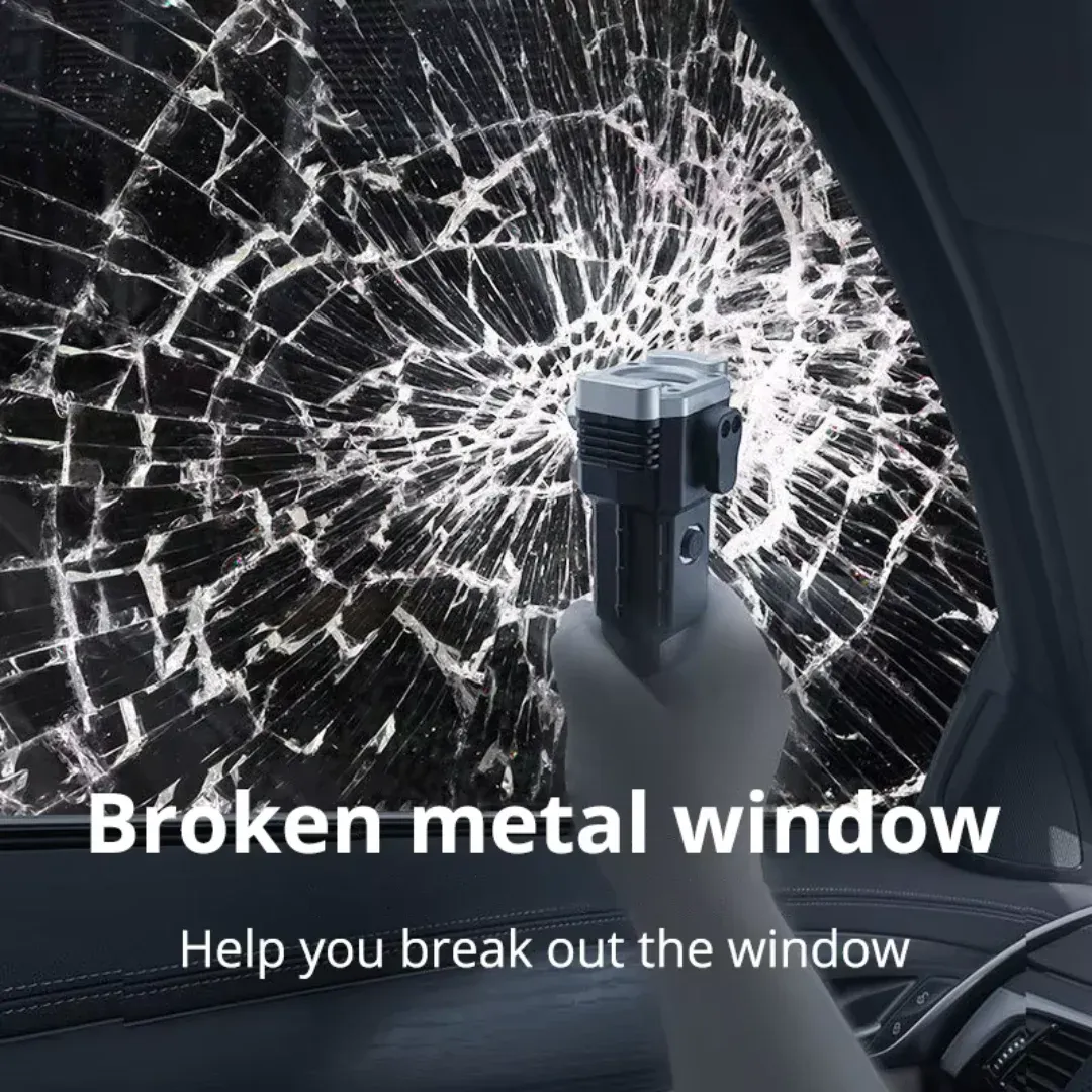 High Power LED Torch Light Rechargeable Flashlight With Tactical Hammer And Power Bank Offering Strong Brightness Durable Quality And Daily Use