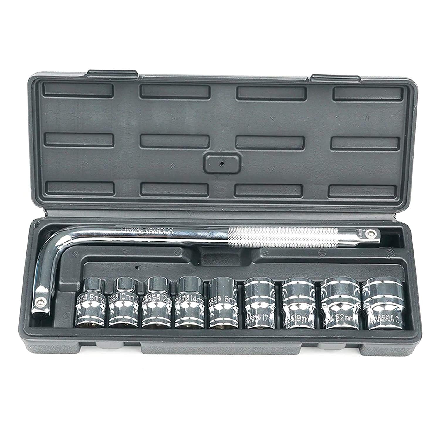 Professional Heavy Duty Socket Wrench Set | 9Pc Tool Kit | 1/2″ Drive | 8‑24mm Metric Sockets + L Wrench